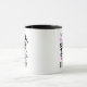 Adding to the mug's charm, a whimsical witch riding a broom soars across the surface, accompanied by a black cat, a pink jack-o'-lantern, and a crescent moon. These delightful illustrations capture the essence of the season's iconic symbols, evoking the magic and mystery that fill the air.