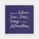 A creative text design in white on navy blue. "When you believe Jesus is King of Kings, it leads to adoration."