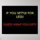 In making a decision, my dad often reminded of what happens if I settle for less, when he asked this question.