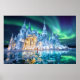 Rising like frozen music from the Arctic landscape, this breathtaking ice cathedral pierces the night sky with its crystalline spires, while the dance of the Northern Lights paints ethereal ribbons of green and purple above. The structure stands as a masterpiece of frozen architecture, where every facet and angle has been sculpted by both nature and imagination.