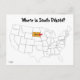 Embark on an exciting journey across the United States with our captivating postcards! Introducing our popular design featuring a blank US map with the intriguing question, 'Where Is South Dakota?' Let the spirit of adventure guide you as you trace your fingers along the map, following the arrow that precisely points to the captivating state of South Dakota. The word 'Here' elegantly displayed alongside the arrow adds a touch of excitement to this educational postcard.