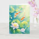 A serene and tranquil underwater scene featuring vibrant koi fish swimming gracefully through calm waters. The orange and white koi fish glide past large green lily pads, with delicate white lotus flowers blooming in the foreground. Soft bubbles rise to the surface as the sunlight gently filters through the water, creating a peaceful ambiance. This serene koi pond scene evokes feelings of calmness, beauty, and harmony, perfect for nature lovers and those who appreciate peaceful aquatic imagery.
