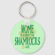 This St. Patrick's day design is a large shamrock and the caption "Home is where the shamrocks are".