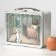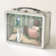 This is a standard metal lunchbox that appears to work just fine. We designed this box ourselves with an uploaded photo and custom text on the front and back. It looks absolutely beautiful except the front of the lunchbox is not centered like it shows in the photo. The print borders don't align with the inset flat part of the box where the preview photo online showed it perfectly centered in there. The back looks nice and centered though.