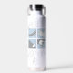 The bottle looks even better in real life. The ice cubes I put in lasts all day! I have my bottle with me all the time. It's summer and having something cold to drink feels amazing. With this bottle I always have something super cold. I have only tried the hot drink once and it lasted a long time as well. The color blue is a navy blue and the white printed on it is vibrant. It printed perfectly. I love my personalized smile water bottle.