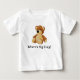 Adorable picture of a teddy bear asking, "Where's My Hug?", is featured on this t-shirt for babies. In white, with brown teddy bear, this baby tee comes in different sizes, from six months to twenty-four months. A cute gift for the baby that loves hugs!