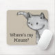 A whimsical mouse pad to keep your mouse safe! A beige background with a pencil sketched kitty. The text "Where's my Mouse?" os set in a modern black font. A fun mouse pad for cat lovers.