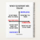 Showcase wry intelligent psychological and philosophical humour with this planner that sports the quadrant with knowledge and conscious as the axes. Ask yourself and others, no matter how little you know or how much you know, "Which Quadrant Are You In?" Do a double-take and be more philosophical about what you know and how conscious you are about your knowledge of anything with this planner!