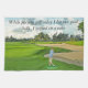 While playing golf today I hit two good balls. I stepped on a rake. Saying on this hand towel.