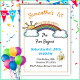 This whimsical, colourful children's birthday party invitation features a happy rainbow and smiling sun announcing the date and time of your child's party.