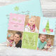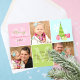 Whimsical 3 Photo Pink & Pastels Holiday Card