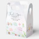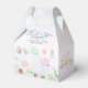 Welcome to a whimsical world of nature's tiny wonders with our 'A Little Love Bug Is On Her Way' thank you favour box. This enchanting box is a perfect for you to send your guest on their way, saying, thank you for their gifts and attending your celebration. Adorned with delicate watercolor elements, the invitation features a delightful ensemble of a honeybee, butterfly, ladybug, snail, caterpillar, beetle, and mayfly, each rendered with a gentle touch. The artwork is nestled among a flourish of flowers and greenery, setting a scene of natural beauty and charm.