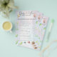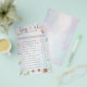 Welcome to a whimsical world of nature's tiny wonders with our 'A Little Love Bug Is On Her Way' Guess Who Game Card. This enchanting card is a perfect thank you to you guest for their gifts and attending your celebration. Adorned with delicate watercolor elements, the invitation features a delightful ensemble of a honeybee, butterfly, ladybug, snail, caterpillar, beetle, and mayfly, each rendered with a gentle touch. The artwork is nestled among a flourish of flowers and greenery, setting a scene of natural beauty and charm.