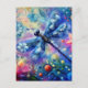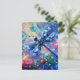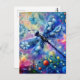 Whimsical Abstract Dragonfly Floral Teal Blue Pink Postcard
