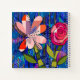A fun abstract designed background with 2 whimsical flowers, in bright, bold colours. You can customise the message and the colour label under the message.