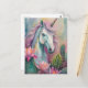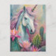 A modern abstract painting featuring a whimsical unicorn surrounded by pastel-coloured cacti and succulents. The unicorn, painted in flowing lines and vibrant colours, stands out against the soft tones of blush pinks, mint greens, and pale blues in the desert plants. This playful, imaginative composition combines the mystical aura of the unicorn with the organic beauty of desert flora, creating a dreamy, magical scene with a contemporary artistic touch.