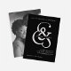 This unique and modern dark wedding save the date card features a bold, flowy very light grey ampersand on a black background, with a simple and creative text layout that is sure to stand out. Add your favourite personal photo to the back.