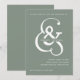 This unique and modern wedding invitation features a bold, flowy white ampersand on a sage green background, with a simple and creative text layout that is sure to stand out.