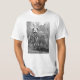 Definitely a great example of whimsical anatomy, this rather macabre vintage art was done by Jan Wandelaar as an engraving for Bernhard Siegfried Albinus"s Tabulae sceleti et musculorum corporis humani an anatomy text published in 1747 which has some rather unusual backgrounds such as this rhino and makes this a very unique shirt with both front and back views of the skeleton and rhino on the shirt its sure to stand out.