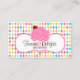 © 2011 Socialite Designs. Whimsical cupcake, with swirl icing and cherry, business cards ready for you to personalise for your business. Background has a fun and colourful argyle / diamond pattern. Font style and colour can be changed. Need HELP with customising? Please do not hesitate to contact me with your requirements.