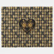 A whimsical and romantic goth design to turn an ordinary blanket into a Valentine featuring an elegant heart with golden roses on a dramatic black and gold harlequin pattern background.