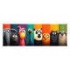Brighten your space with this cheerful poster featuring a lineup of whimsical animals, including an elephant, panda, owl, bear, and more. With bold, colourful backgrounds and quirky big-eyed expressions, this design is perfect for nurseries, playrooms, classrooms, or as a fun accent in any home. Full of charm and personality, this playful artwork brings smiles to both kids and adults alike.