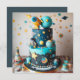 OUT OF THIS WORLD! KIDS BIRTHDAY LAYER CAKE ON THE FRONT OF THE CARD. COMPLETELY EDITABLE COPY ON THE BACK.