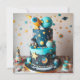WHIMSICAL ASTRONAUT & SPACE KIDS BIRTHDAY CAKE CARD