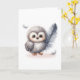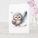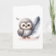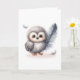 Whimsical Baby Owl with Falling Feathers Blank Card