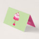 Whimsical bakery folded business card done in pale green and pink, with cute graphics of cupcakes and polka dot scalloped ribbon. A ten square loyalty stamp area is on the inside. Personalise all the text inside and out to suit your business needs.