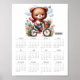 Whimsical Bear Riding a Bicycle 2025 Wall Calendar Poster