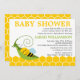 © 2012 Socialite Designs. The mother-to-bee will certainly buzz to celebrate her upcoming birth with this whimsical bee baby shower invitation. Our vector design incorporates a sweet little be inside a pea pod and a honeycomb pattern. A wonderful invitation for the gender-neutral baby shower.