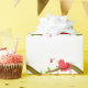 A nature design featuring a whimsical birdie perched on a branch of a tree. Flowers and greenery accent it.