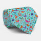 Whimsical birds and flowers in pink, orange, blue and purple on a blue background decorate this colourful tie.