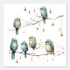 Whimsical Birds on Branches Vintage Style Wallpaper