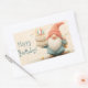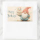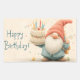 Whimsical Birthday Greeting: Gnome Holding a Cake Rectangular Sticker