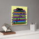 Whimsical Black Cat Clock. An adorable black cat sleeping on top of a giant stack of books. Artsy and fun, hand drawn by artist this is a great gift for anyone who loves black cats.