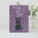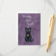 This enchanting enclosure card features a sleek black cat sitting amidst gothic floral accents, set against a deep, velvety purple background that perfectly complements a moody or Halloween-themed wedding suite.