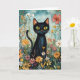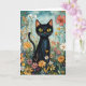Whimsical Black Cat with Wildflowers Illustration Card