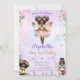 Cute and whimsical black first fairy birthday invitations for baby girl, African American fairy first birthday invitation. Shimmery gold design