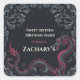 Whimsical Black Red Dragon Damask Sweet 16 Bash Square Sticker