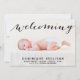 Whimsical Black Script Photo Birth Announcement