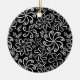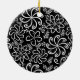 Whimsical Black White Spiral Flower Leafs Pattern Ceramic Ornament
