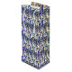 Whimsical blue and gold peacock feather pattern wine gift bag