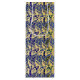 Stylised and whimsical hand-drawn peacock feather pattern in blues and gold.