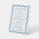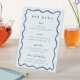 Whimsical Blue, bar menu list pedestal sign. Features, light blue and white stripe pattern background, hand drawn wavy line border with matching blue typography. Fonts and element colours can be customised.