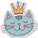 Whimsical blue cat sticker with a yellow crown – cute cartoon drawing in doodle art style. Perfect for cat lovers, this playful blue cat illustration features a fun and quirky design. The charming doodle-style artwork adds a touch of whimsy to any space.