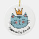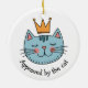 Whimsical Blue Cat With A Yellow Crown Custom Ceramic Ornament