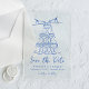 Announce your special day in style with the Whimsical Champagne Tower Save the Date. This exquisite card features a chic blue line art illustration of stacked champagne glasses, with champagne gracefully trickling down, set against an acrylic background. "Save the Date" is elegantly displayed in a blue handwritten script, adding a personal and stylish touch. Below, your names, wedding date, and location are showcased, making this card uniquely yours. Printed on your choice of frosted or transparent acrylic, this save the date is perfect for setting the tone of sophistication and celebration for your wedding. Order now and make a lasting impression with the Whimsical Champagne Tower Save the Date.