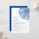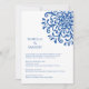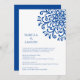 Celebrate your special day with a touch of elegance and sophistication with our unique and artfully designed wedding invitation. Featuring a pristine white background adorned with a mesmerizing blue rotational symmetry pattern of swashes and dots making up a flowery pattern, this invitation beautifully captures the essence of timeless romance and modern charm.
